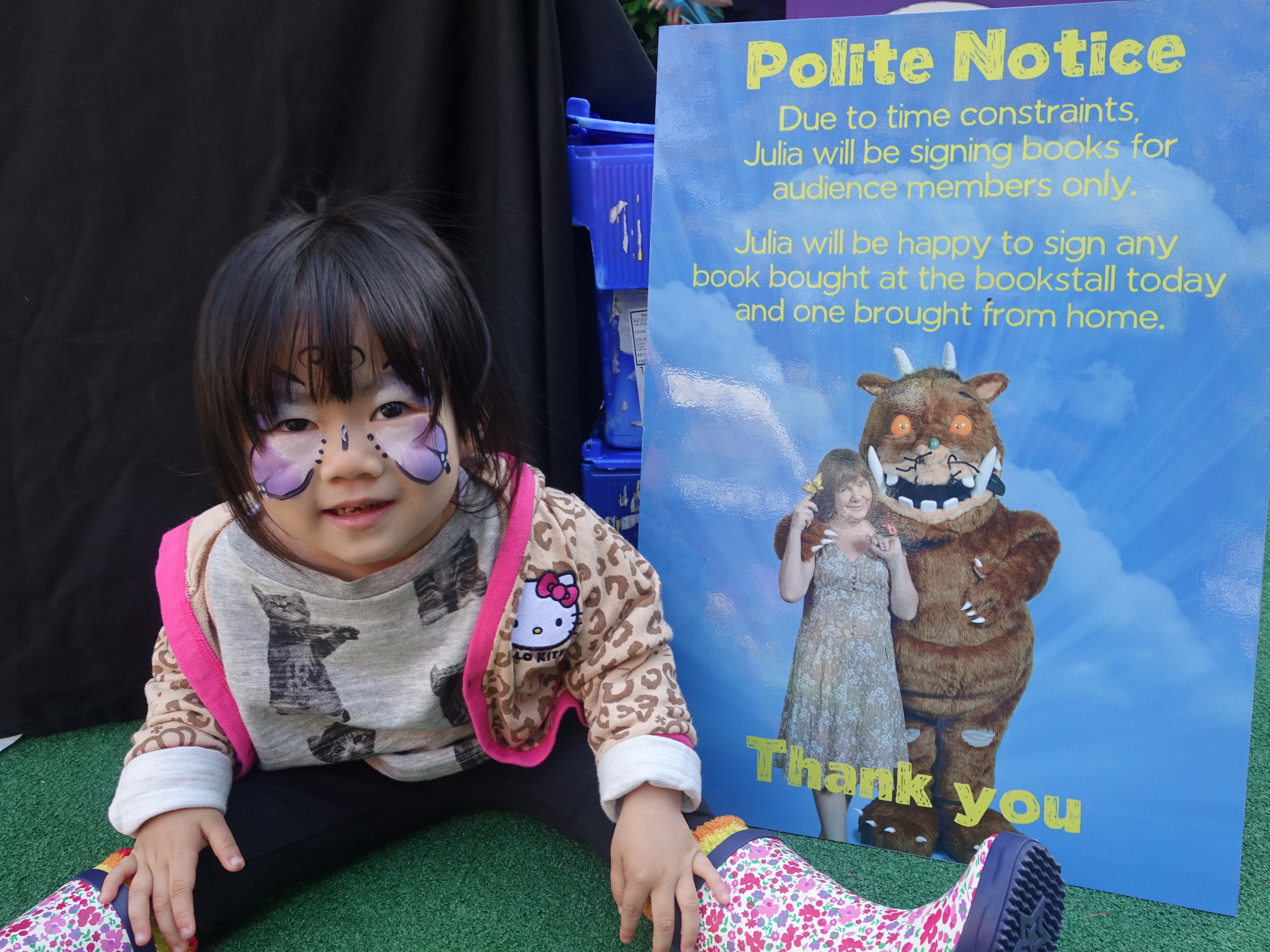 我們造訪愛丁堡期將,正值每年八月盛大又熱鬧的國際藝術節( Edinburgh International Festival),整個城市各種類型表演繁多,昨日我們就去看了一場古肥羅(Gruffalo)作者Julia Donaldson領銜主演的兒童音樂劇,一個小時共演出四個小故事,包括Julia自己最喜愛的「Jack and the Flumflum Tree」、「What the ladybird Heard」、「A Squash and a Squeeze」、「ZOG」,在小型近距離的劇場內,鰻魚可以很清楚看到表演者們生動的表情與歡樂的繪本歌曲,以及最後講到ZOG這本時,邀請小朋友加入演出當小恐龍等橋段,整場安排相當緊湊與豐富。