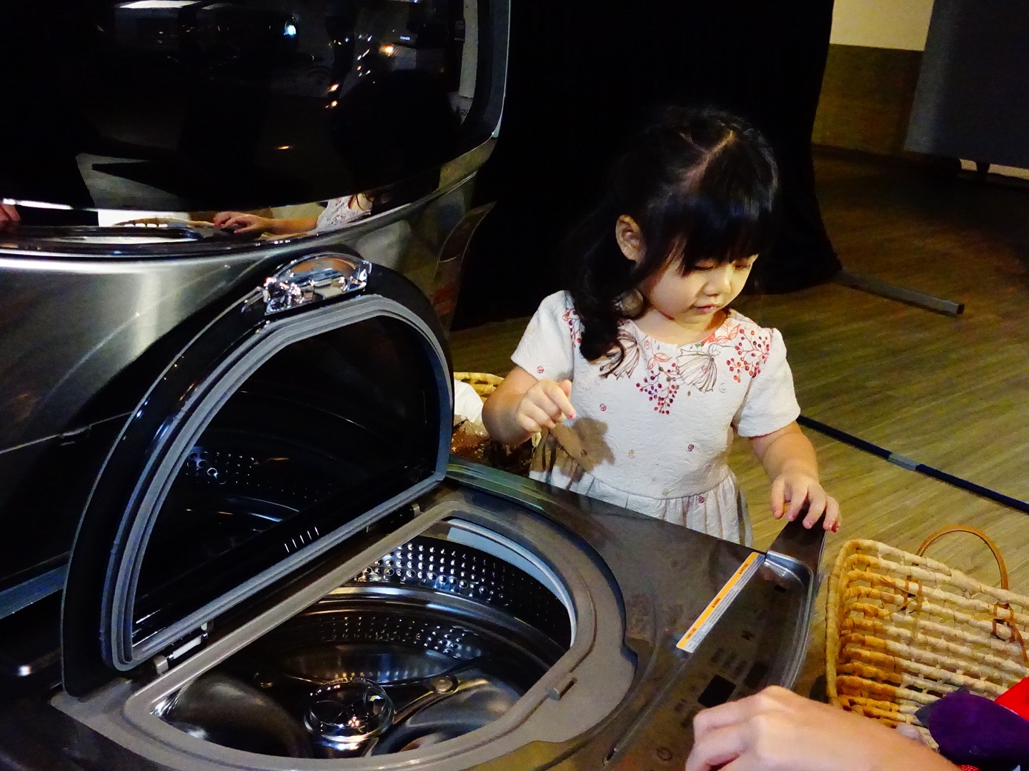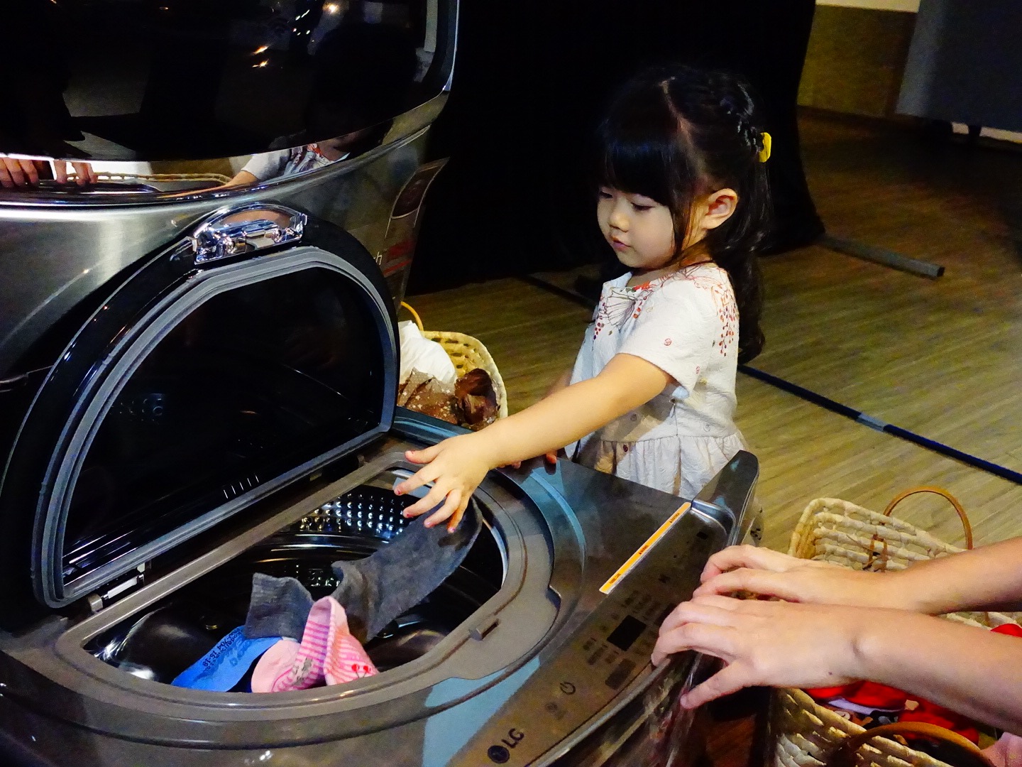 尤其,3.5kg容量的迷你洗衣機設計,居然把「建立親子關係」這一層面也考慮進去了。往往,媽咪們在做家事,最怕的就是孩子在旁邊吵,許多媽咪們總趁孩子睡著後,趕快整理家務,但若從訓練孩子做家事和親子關係建立的角度出發,如何兼顧兩者,才是最有智慧的家長該做的選擇。迷你洗衣機的高度,完全符合學齡前孩子的身高,親子一起把做家事變成遊戲,也可以省出更多的時間陪伴家人。