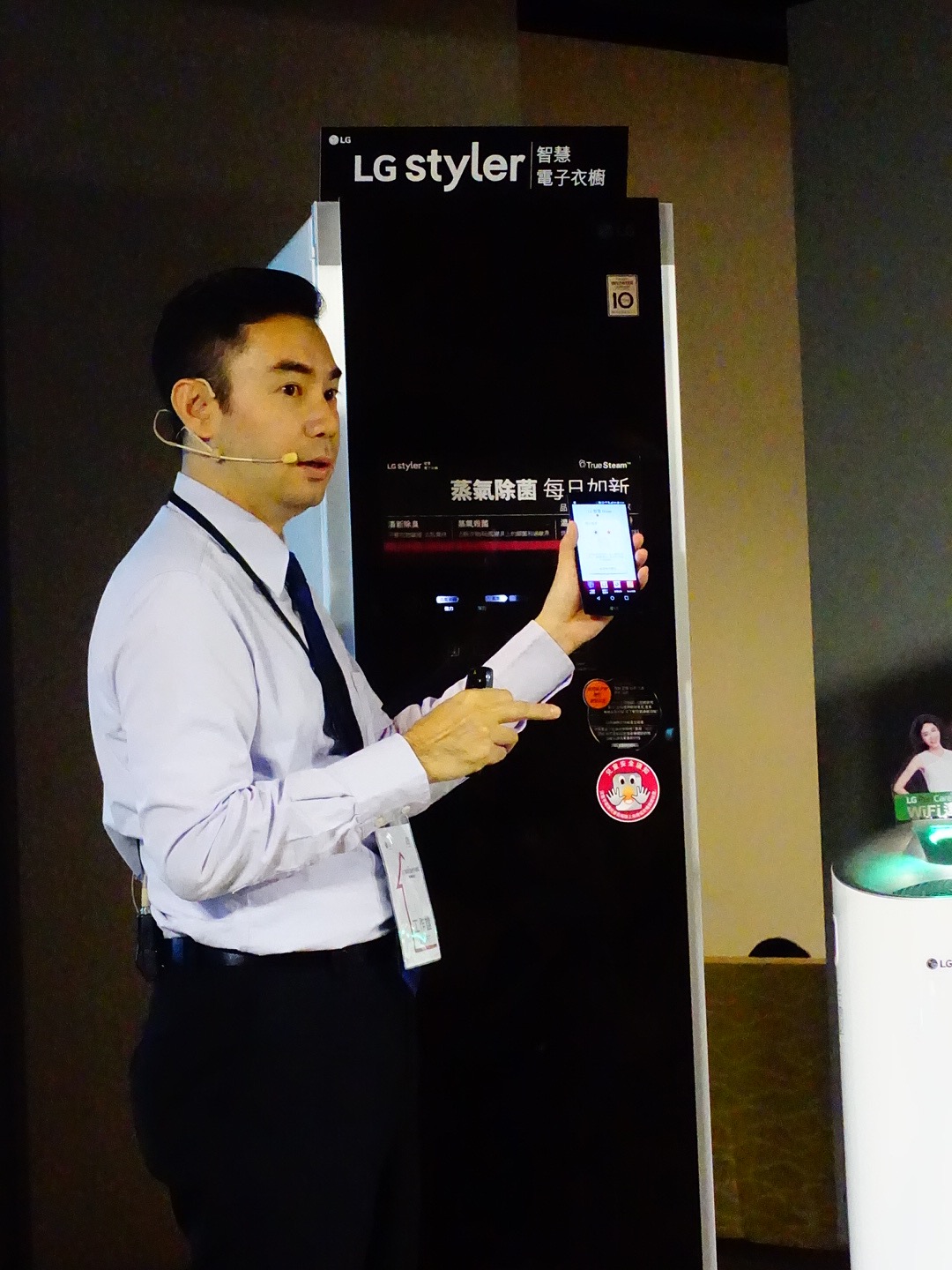 現場,徐小可和LG生活家電講師David特別現場讓大家見識styler的神奇功能,分別拿出兩件一樣皺巴巴和氣味不佳的襯衫,放入智慧衣櫥中,簡單設定一下行程,就像廣告影片般神奇的事情在48分鐘後發生在我們的眼前。就是這樣一項全球獨步的新發明,讓媽媽們在家就可以輕鬆打理心愛衣物,一次完成殺菌除臭、除皺及烘乾等多項需求,減少送乾洗的次數,不僅方便,更降低乾洗化學藥劑的危害。