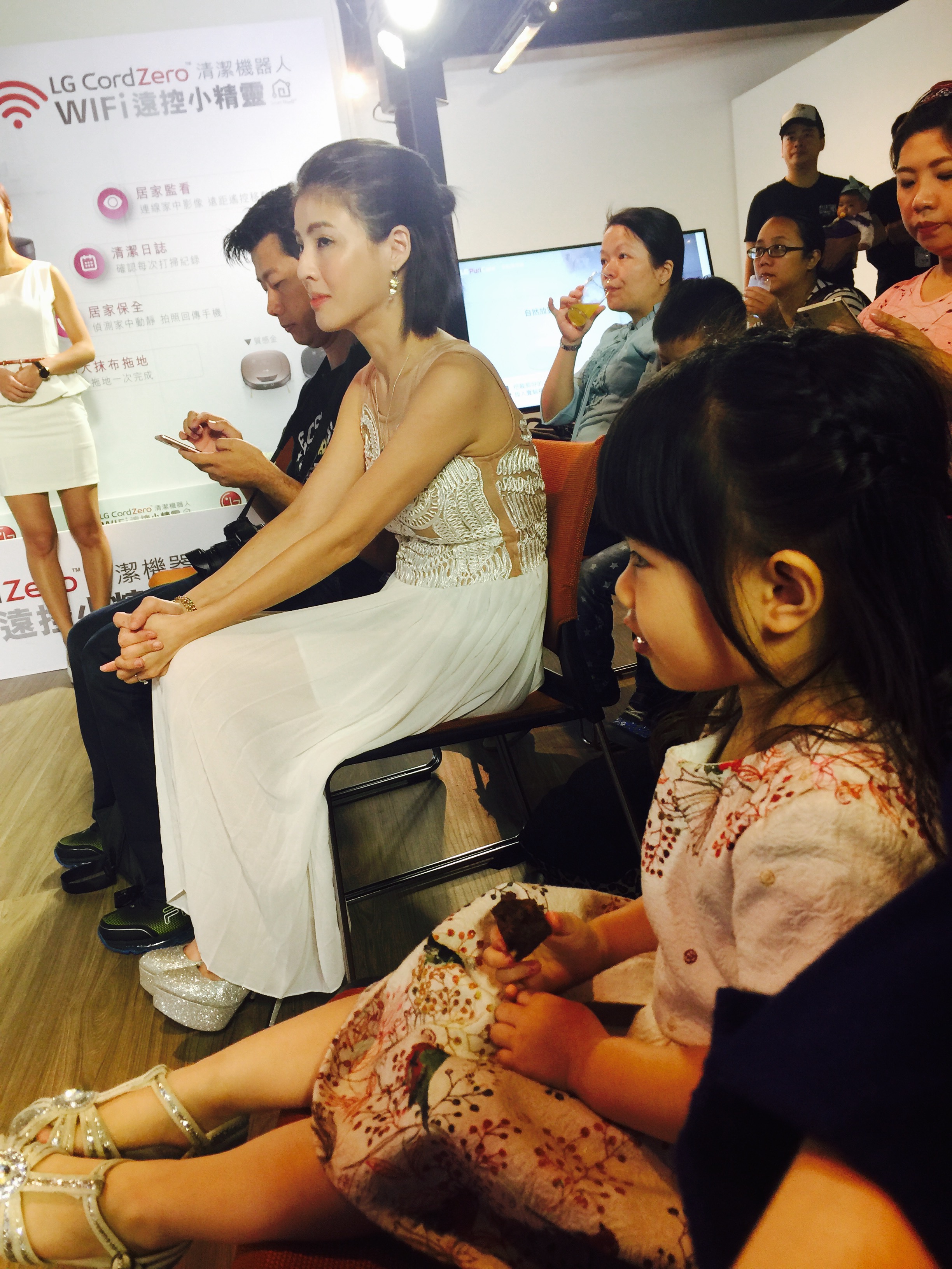 是滴,超興奮!鰻魚把她的第一場正式活動獻給了國際大牌「LG Smart生活家電新品體驗會」,看到鰻姐盛裝打扮,還指定要捲捲頭,可見重視程度有多高了。[照片中,兩個人正在討論網路超夯小金(掃地機器人),最愛吃什麼!]