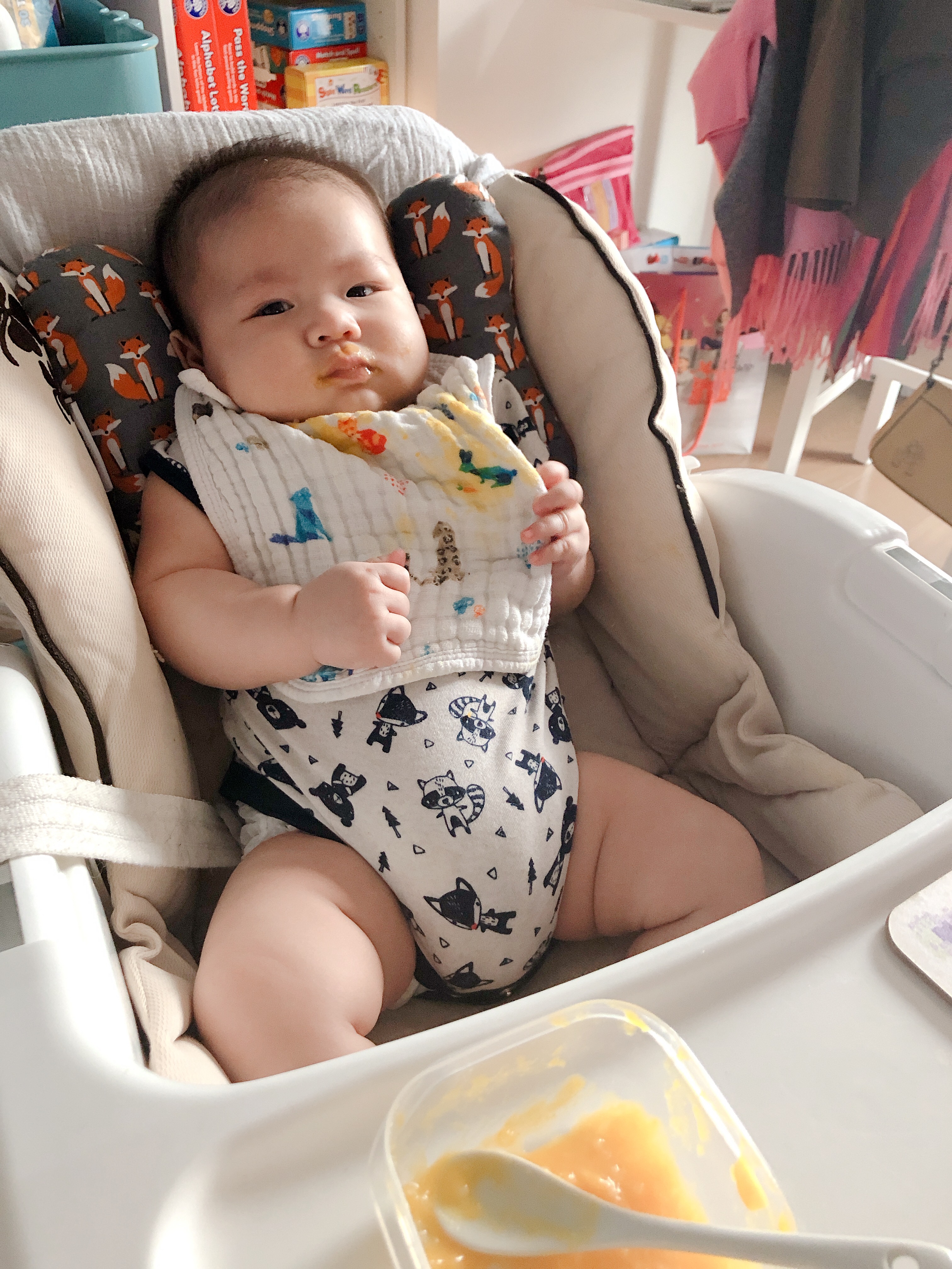 同場加映一下提醒新手媽咪注意,我長期使用的某美國品牌,其中採三層棉紗編織的圍兜,下水後竟出乎我意料之外的「不柔軟」,甚至可說「過分硬挺」,與他們家的包巾相比較,真的讓我有好幾分失望而將其束之高閣。