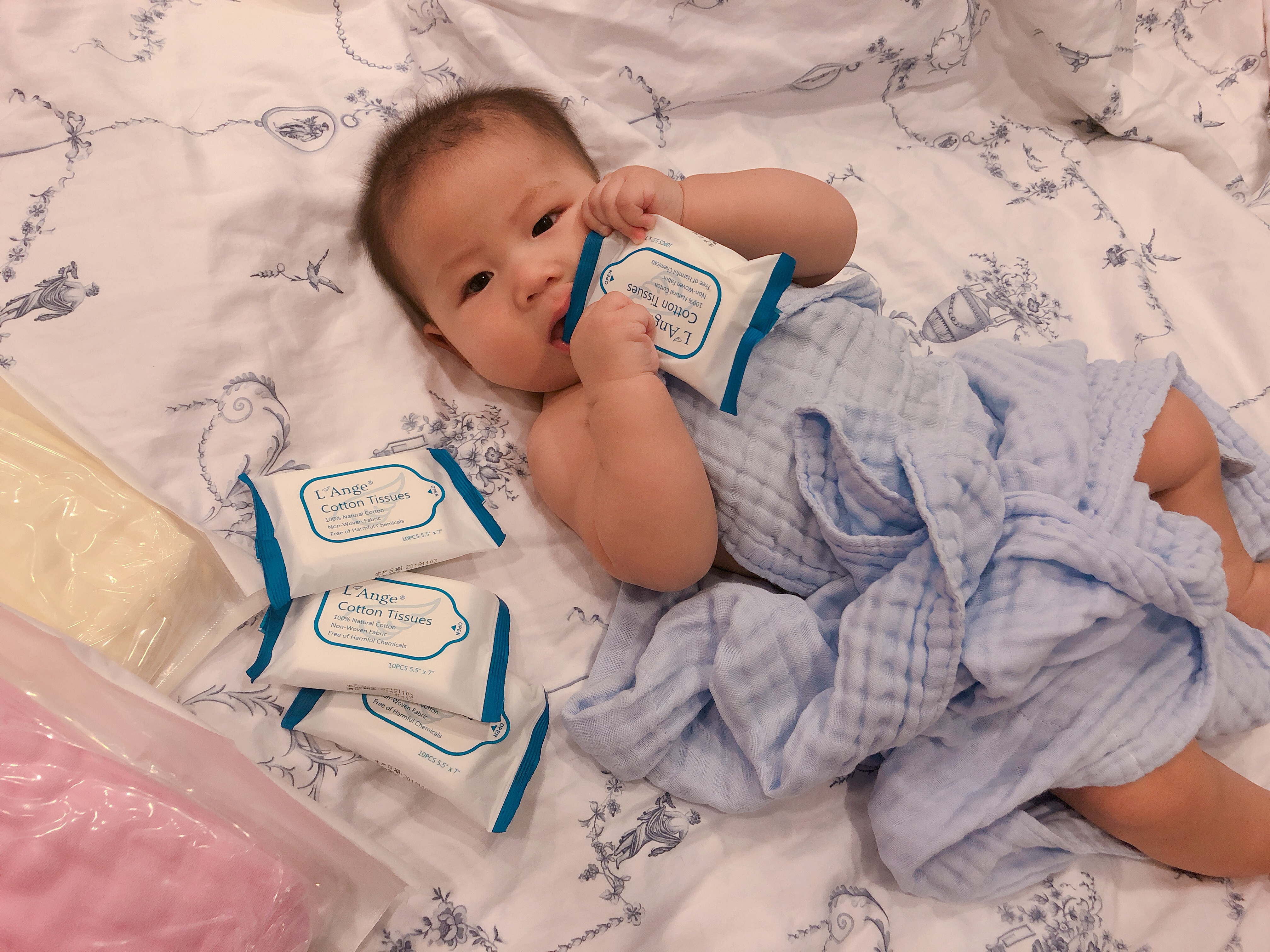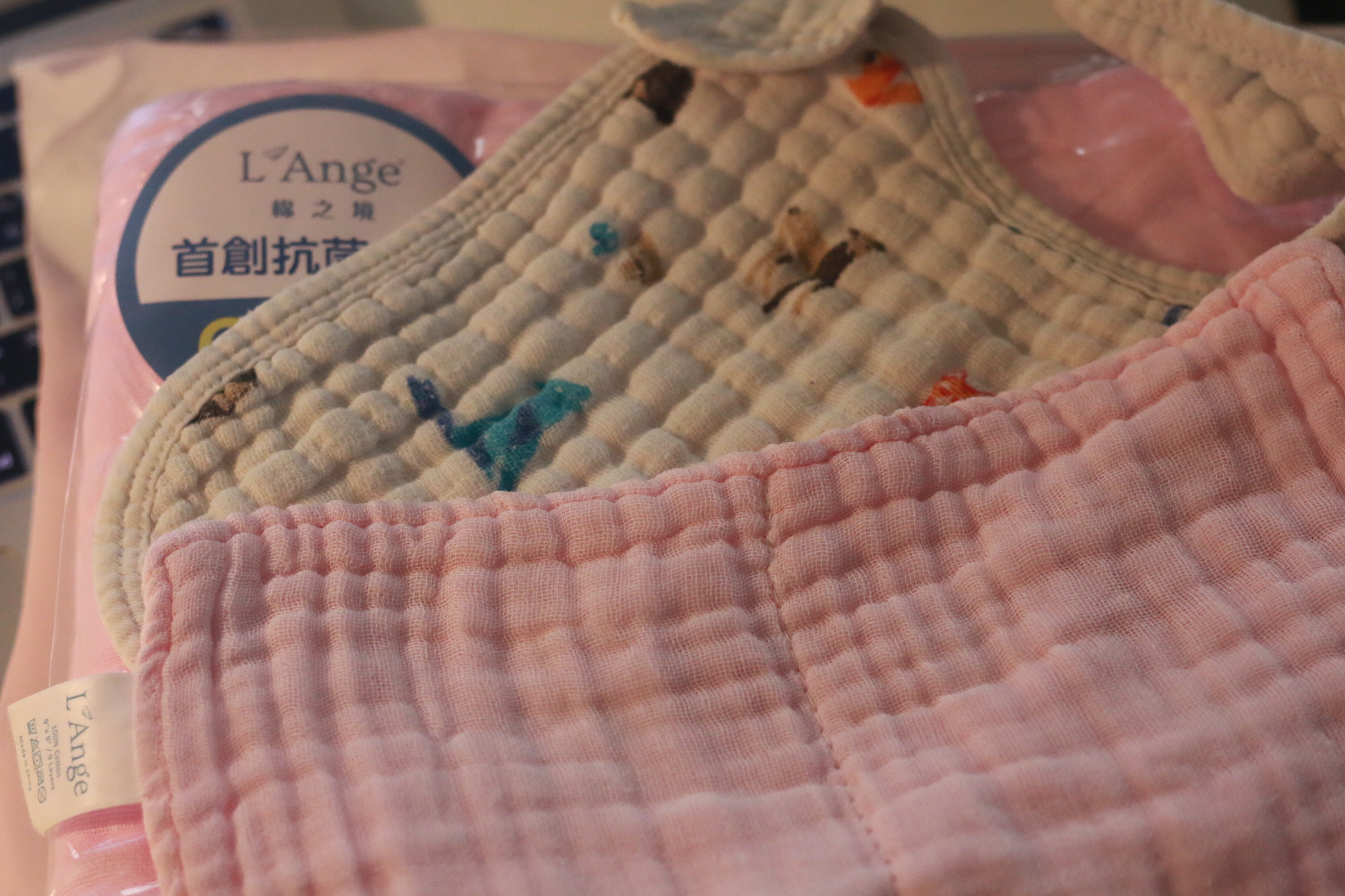 當場請教店員才知道,原來這個美國品牌L’Ange®是以「首創」醫療級抗菌無塵包裝,及100%天然純棉紗布知名,採「縱橫交錯編織」而成,特別的「小鼓包」設計,像雲朵般蓬鬆,層疊紗布間留出足夠空隙,可以快速帶走多餘水分,讓柔軟度、吸水力、透氣性再升級等多重優點。洗滌後,更可達到快速曬乾,愈洗愈柔軟的效果。