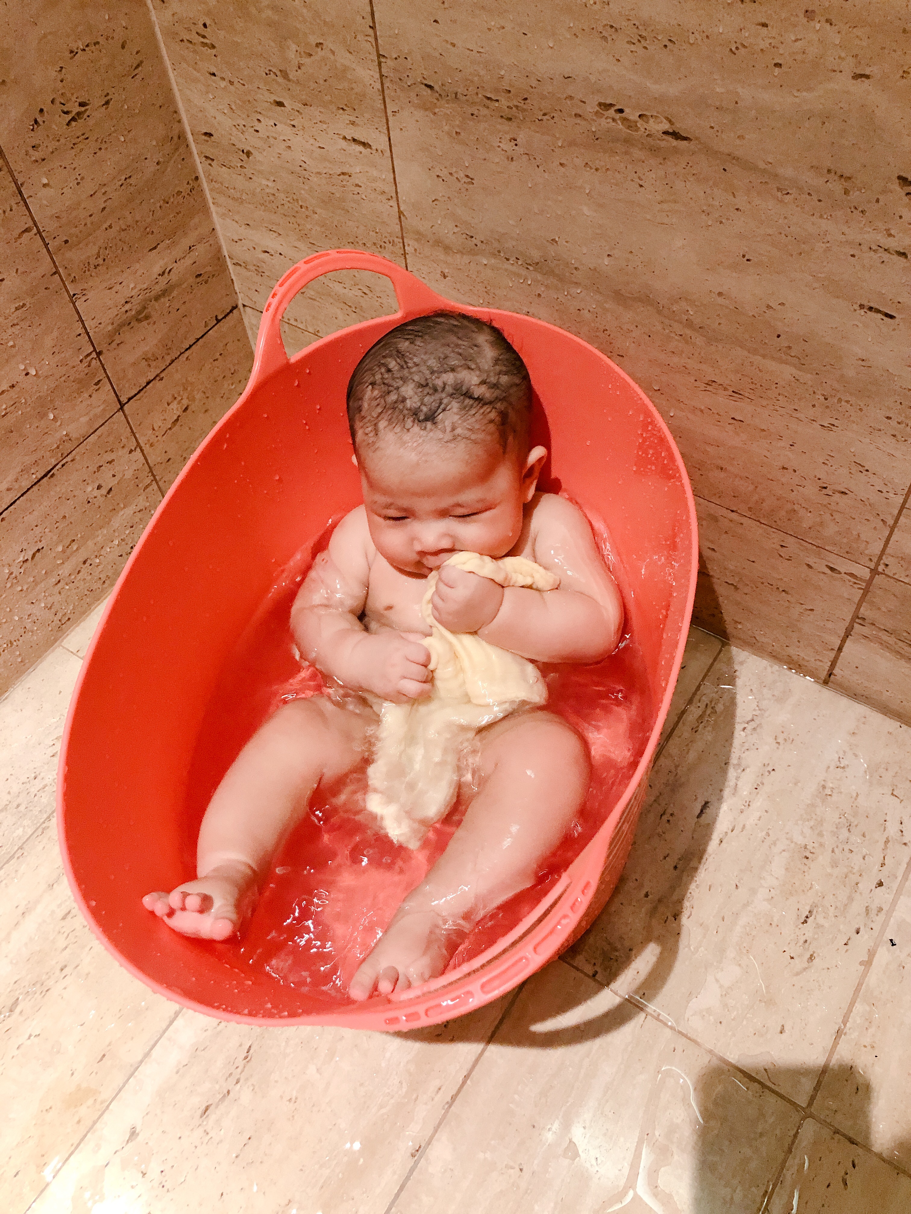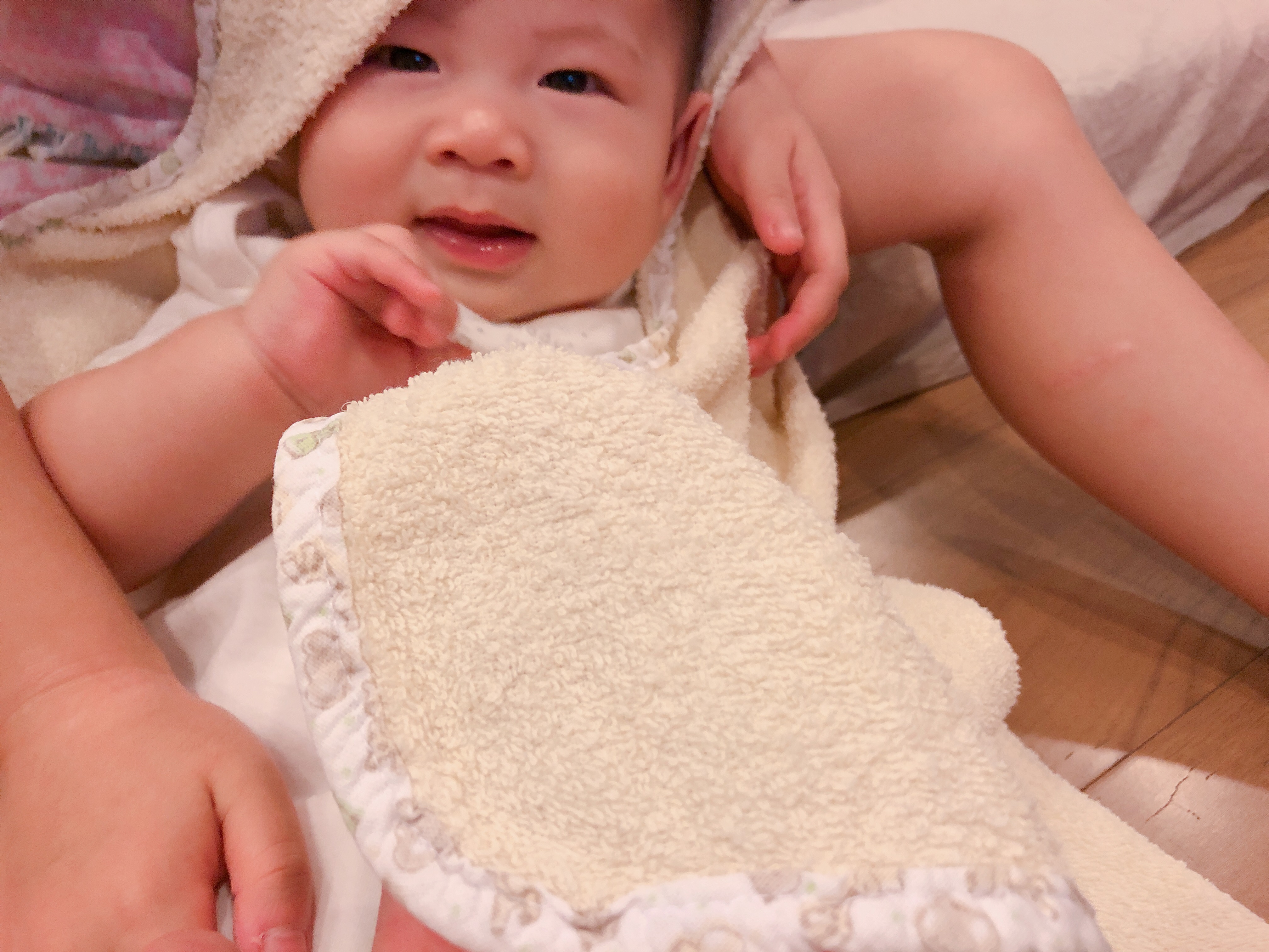 此外,基於衛生理由,這半年來不管去游泳、外出過夜,甚至八月份去新加坡long stay我都特地為姐弟倆帶上平日使用的棉之境浴巾和方巾,甚至連威利的澡桶我們都自己扛去了,夠龜毛了吧!