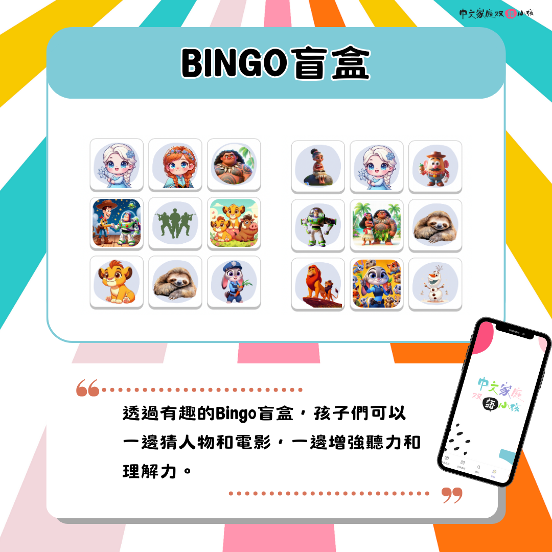 - 《電影大玩家》:以「金片串燒」概念出發,將《看電影學英文》15部影片,集結五部再出一個綜合版本Game(遊戲)型態的內容(ps.共會推出三輯),將各式聽力、識字、劇情理解等,用Bingo盲盒、聽前奏猜歌名、歌曲接龍等來包裝學習。