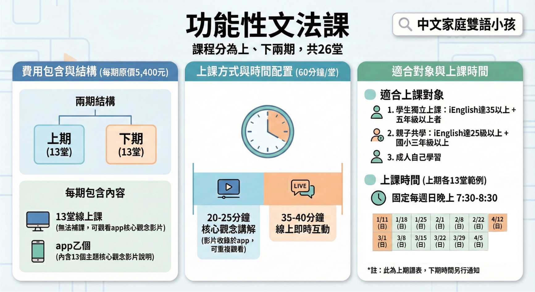 12/10(三)晚上8:30 將有【功能性文法課】售前說明講座,會議連結請點擊我
