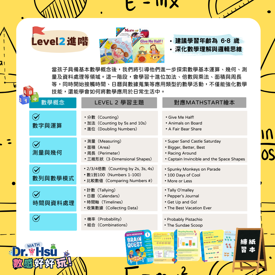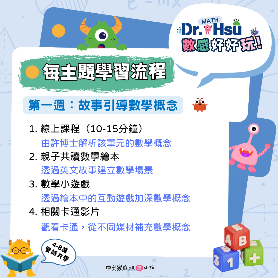 |21個數學概念+Dr.Hsu爸媽概念解析、數學卡通、21個MathStart 繪本音檔+繪本閱讀測驗+親子小遊戲)