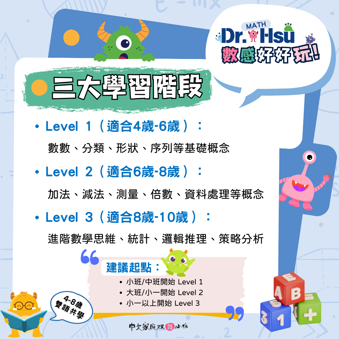 - 【Dr.Hsu數感養成課】app 共 3 個, 每階均包含: