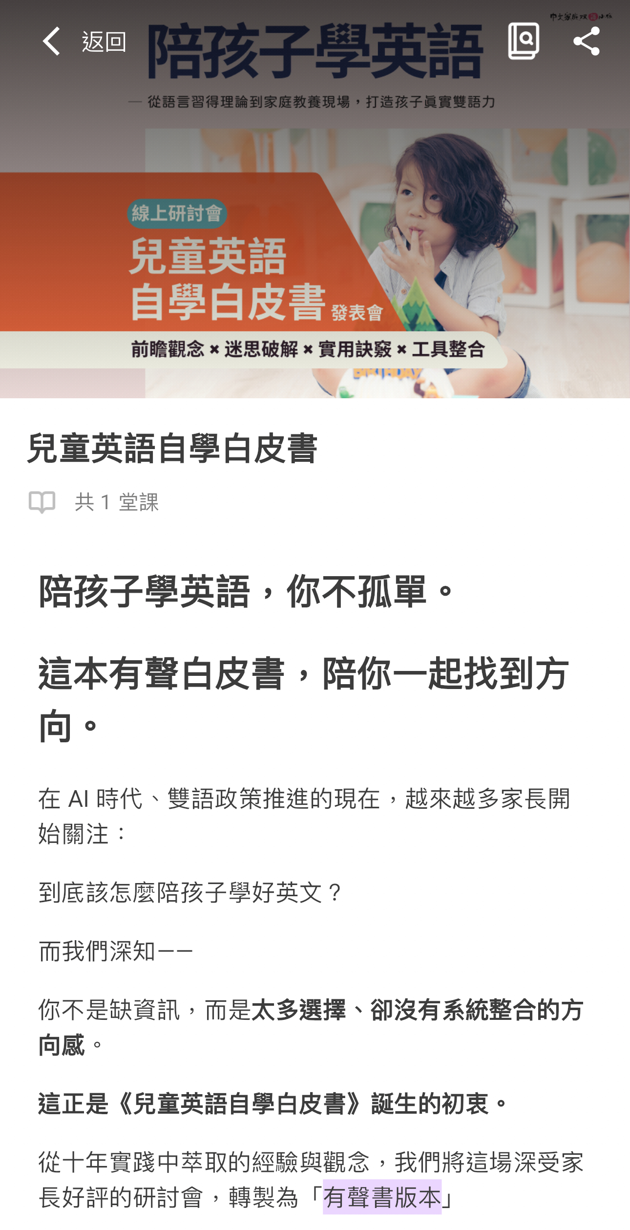( 💢 特別留意:此非線上研討會,是七八月份研討會實況音檔+重點影片回放,非常適合之前時間無法配合參加線上研討會與想要完整了解英文學習觀念與方法的爸媽!)