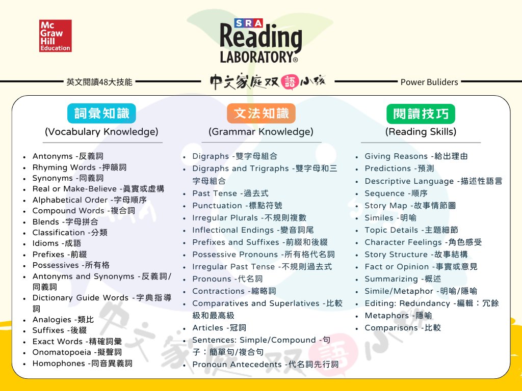 此為英文在家自學品牌《中文家庭雙語小孩》提供 McGraw Hill. 出版集團出版,市場最強「48大英語閱讀技巧能力」訓練的《SRA Reading Laboratory 》數位版本帳號開通表單。